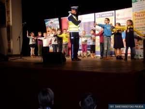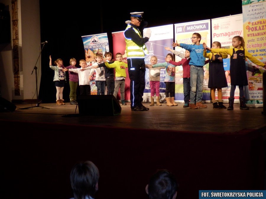 Policjanci z ostrowieckiej komendy przypominali dzieciom podstawowe zasady bezpieczeństwa, jakie powinien przestrzegać pieszy uczestnik ruchu drogowego. Pierwszaki aktywnie uczestniczyły w spotkaniu śpiewając piosenki i odpowiadając na pytania prowadzących, dotyczące różnych dziedzin. Policjant drogówki zaprezentował jak wygląda kierowanie ruchem na skrzyżowaniu.