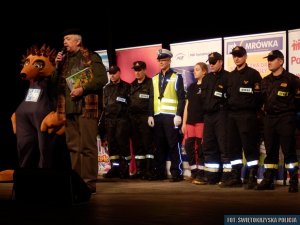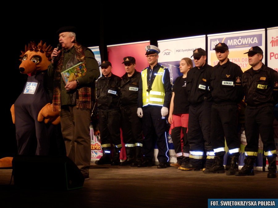 Dzieci z klas pierwszych szkół podstawowych z Ostrowca Świętokrzyskiego i gmin powiatu ostrowieckiego spotkały się z bajkowymi bohaterami i przedstawicielami służb ratowniczych w kinie Etiuda Miejskiego Centrum Kultury. W przedsięwzięciu uczestniczyli m.in. policjanci, strażacy oraz przedstawiciele służby zdrowia i KRUS-u. Akcję wspierali Prezydent Miasta Ostrowiec Świętokrzyski Jarosław Górczyński, Burmistrz Kunowa Lech Łodej oraz Wójt Bodzechowa Jerzy Murzyn.