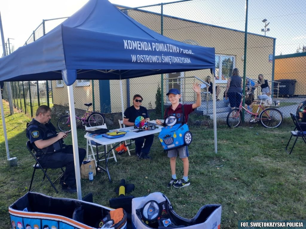 W niedzielne popołudnie funkcjonariusze z Komendy Powiatowej Policji w Ostrowcu Świętokrzyskim wzięli udział w pikniku rodzinnym, który odbył się na osiedlu Kolonia Robotnicza w Ostrowcu Świętokrzyskim. Najmłodsi uczestnicy wydarzenia mogli zapoznać się z podstawowymi zasadami bezpieczeństwa na drodze, przypomniano również dzieciom numery alarmowe oraz przybliżono tematykę związaną z bezpieczeństwem w domu, a także przestrzegano przed kontaktami z nieznajomymi osobami.