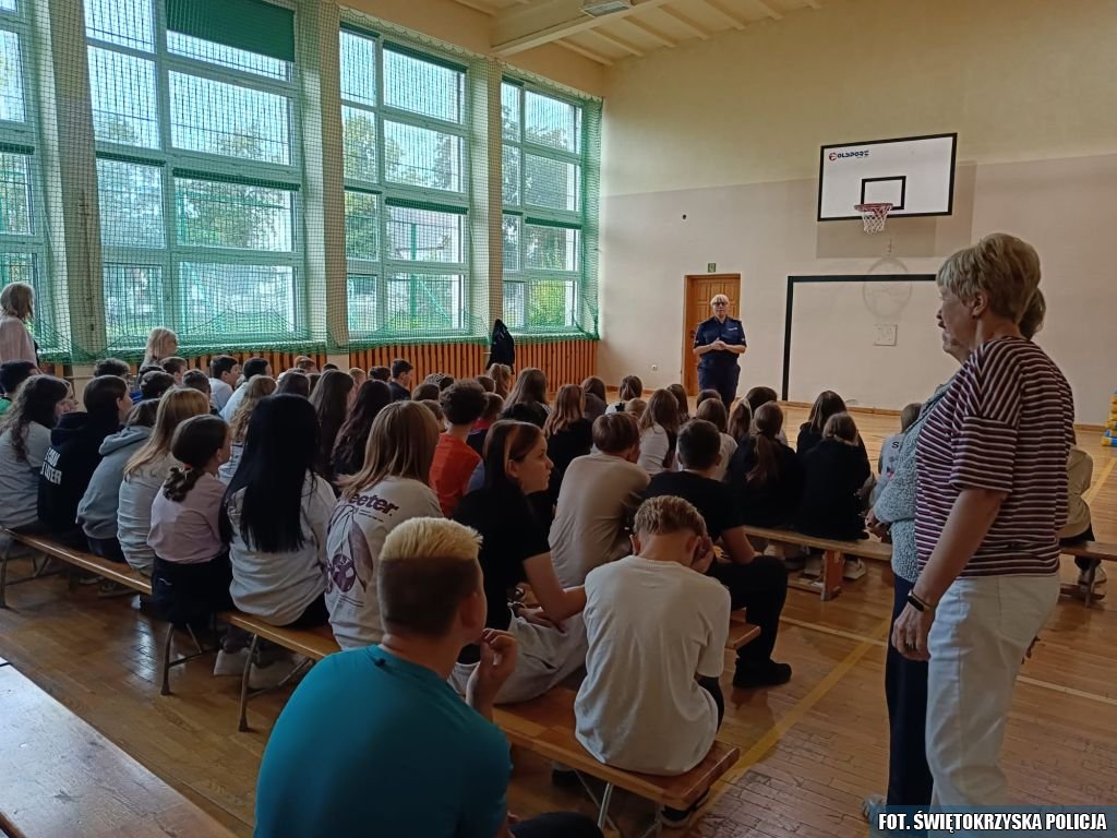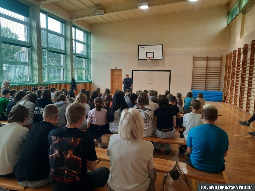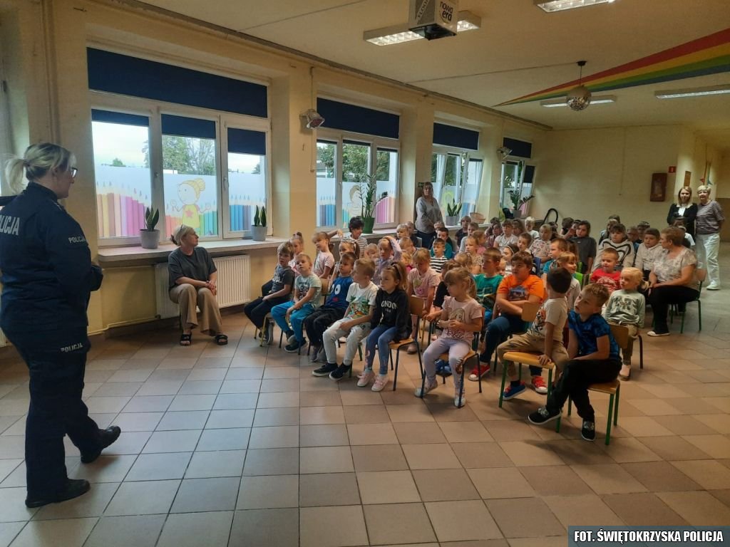 W trakcie prelekcji w klasach I-III mundurowa omówiła zagadnienia dotyczące bezpiecznej drogi do szkoły. Słuchacze dowiedzieli się m.in. w jaki sposób prawidłowo korzystać z chodnika i co robić, jeżeli go nie ma. Funkcjonariuszka przypomniała również, jak bardzo ważne jest noszenie elementów odblaskowych. Ponadto omówiła z uczestnikami spotkania z jakimi zagrożeniami mogą się spotkać w drodze do szkoły i do domu. Uczniowie otrzymali także praktyczne wskazówki, jak unikać rozproszeń (np. korzystania z telefonu podczas przechodzenia przez ulicę) oraz co robić w razie obserwacji niebezpiecznych sytuacji w drodze do szkoły. Najmłodsi dowiedzieli się, także jak bezpiecznie poruszać się hulajnogą elektryczną oraz zapoznali się z obowiązującymi przepisami na ten temat. Akcje pod hasłem „Bezpieczna droga do szkoły” są regularnie prowadzone przez Policję właśnie po to, by zwiększyć bezpieczeństwo dzieci i młodzieży w pierwszych tygodniach roku szkolnego.
