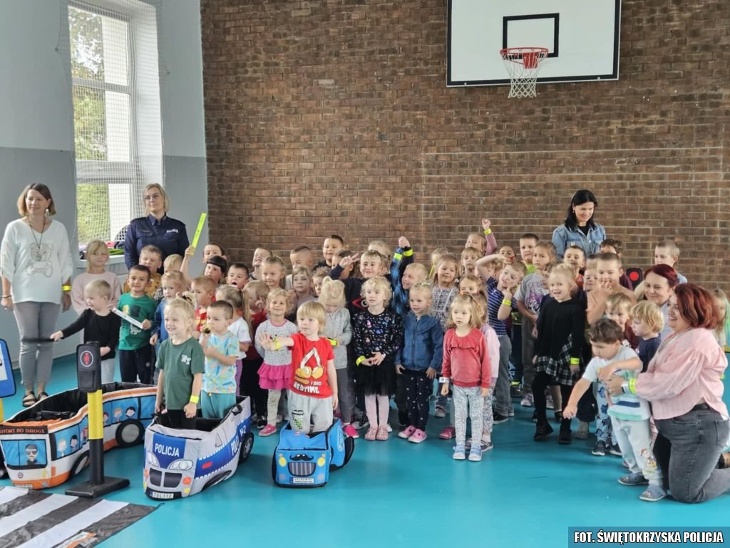 Na koniec spotkania mundurowe obdarowały dzieci opaskami odblaskowymi.