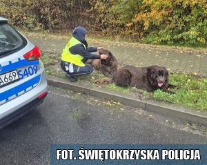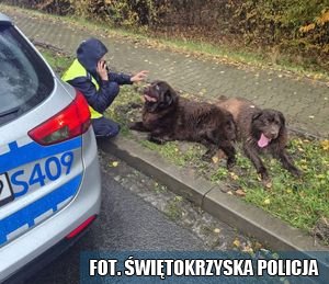 Policjanci każdego dnia pełniąc służbę spotykają się z rożnymi, często nieoczekiwanymi sytuacjami. Tak było również w miniony piątek, tj. 24 października br. kilka minut po godzinie 9.00. Wtedy to policjanci z ostrowieckiej drogówki pełniąc służbę na terenie powiatu ostrowieckiego zauważyli dwa błąkające się przy drodze psy. Zwierzęta były wyraźnie zdezorientowane i przemoczone, bowiem padający deszcz utrudniał im poruszanie się i zwiększał ryzyko, że mogą wtargnąć na jezdnię.