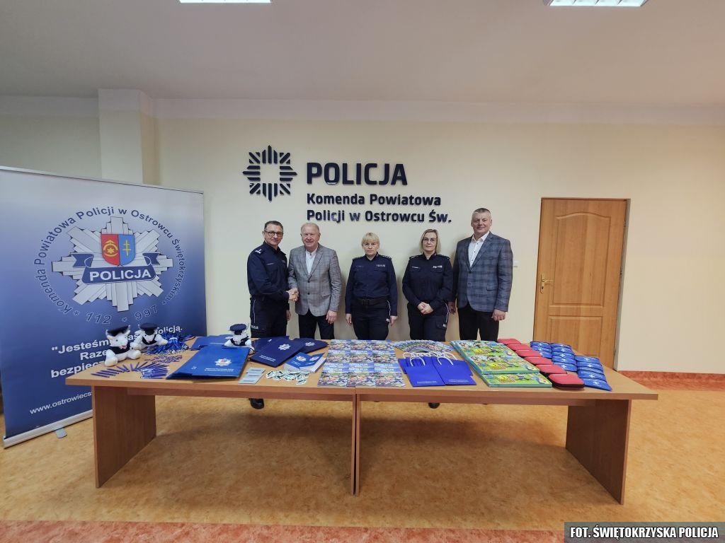 Wczoraj w sali narad ostrowieckiej komendy odbyło się spotkanie z przedstawicielami władz Gminy Waśniów. Celem wydarzenia było omówienie wspólnych działań profilaktycznych oraz zaprezentowanie nowo zakupionych materiałów promocyjnych i edukacyjnych, które zostały zakupione z środków finansowych przekazanych przez powyższe samorządy. Materiały profilaktyczne, takich jak gry edukacyjne, maskotki, lupki, teczki oraz breloczki pomogą mundurowym w promowaniu bezpiecznych zachowań wśród dzieci, młodzieży i dorosłych mieszkańców regionu. Funkcjonariusze podczas prowadzonych działań będą także rozdawać odblaski i zachęcać do ich noszenia, co ma kluczowe znaczenie dla poprawy bezpieczeństwa na drodze i porządku publicznego.