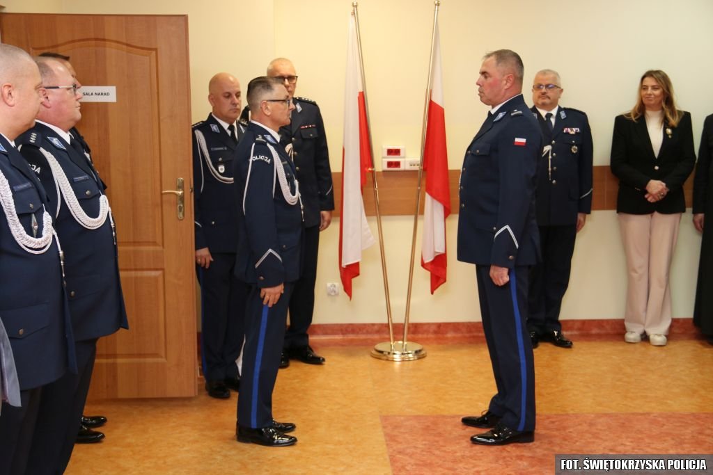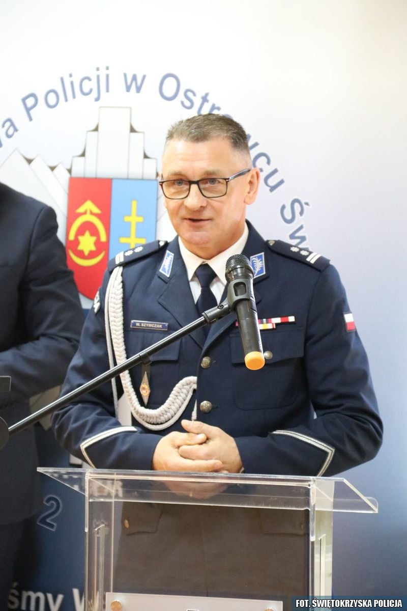 Wydarzenie rozpoczęło się złożeniem meldunku Komendantowi Powiatowemu Policji w Ostrowcu Świętokrzyskiemu mł.insp. Wojciechowi Szymczakowi przez dowódcę uroczystości Naczelnika Wydziału Prewencji podinsp. Mariusza Libudę.