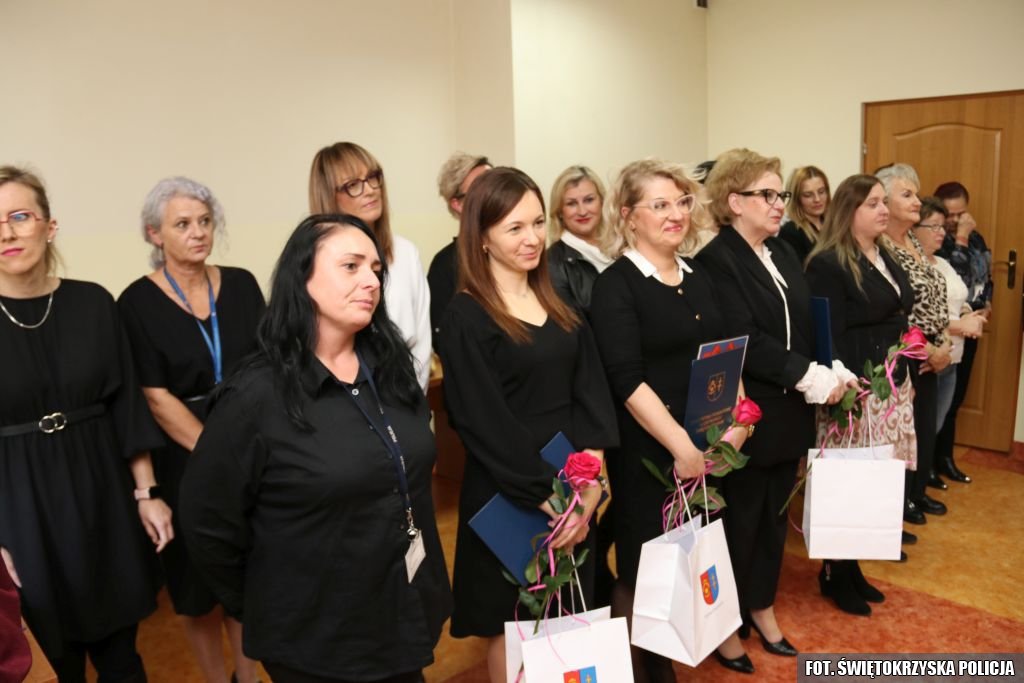 Podczas swojego wystąpienia Komendant Powiatowy Policji w Ostrowcu Świętokrzyskim, wyraził uznanie i wdzięczność wszystkim policjantkom oraz pracownicom cywilnym za ich codzienną służbę oraz pracę, życząc jednocześnie satysfakcji z wykonywanych obowiązków i dalszych sukcesów. Szef ostrowieckich policjantów za oddanie i profesjonalizm w trakcie pełnionej służby również wyróżnił trzy funkcjonariuszki.