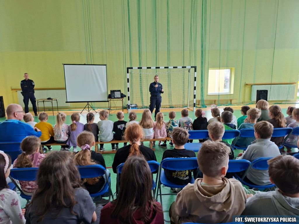 Policjantki z Zespołu Profilaktyki Społecznej ostrowieckiej komendy odwiedziły uczniów w Publicznej Szkoły Podstawowej w Ćmielowie. Mundurowe w ramach trwającej ogólnopolskiej kampanii społecznej „Dzieciństwo bez przemocy", wygłosiły prelekcje na temat wzajemnego szacunku, przemocy domowej oraz cyberprzemocy. Ponadto w klasach najmłodszych przypomniano o podstawowych przepisach i zasadach ruchu drogowego.