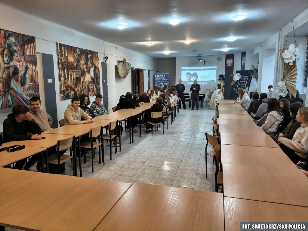 Uczniów Zespołu Szkół nr 3, Zespołu Szkół Ogólnokształcących Mistrzostwa Sportowego oraz Centrum Kształcenia Ustawicznego i Mechanicznego w Ostrowcu Świętokrzyskim przez kilka ostatnich dni w ramach promowania rekrutacji do służby w Policji odwiedziły ostrowieckie policjantki. W trakcie spotkania mundurowe przybliżyły młodzieży specyfikę pracy w Policji, a także przedstawiły im perspektywy rozwoju zawodowego i stabilizacji, jakie oferuje służba w tej formacji. Szczegółowo omówiły procedurę kwalifikacyjną. Uczniowie dowiedzieli się, jakie formalne wymogi musi spełnić kandydat, jakie są etapy rekrutacji oraz jakie dokumenty należy złożyć.